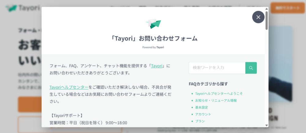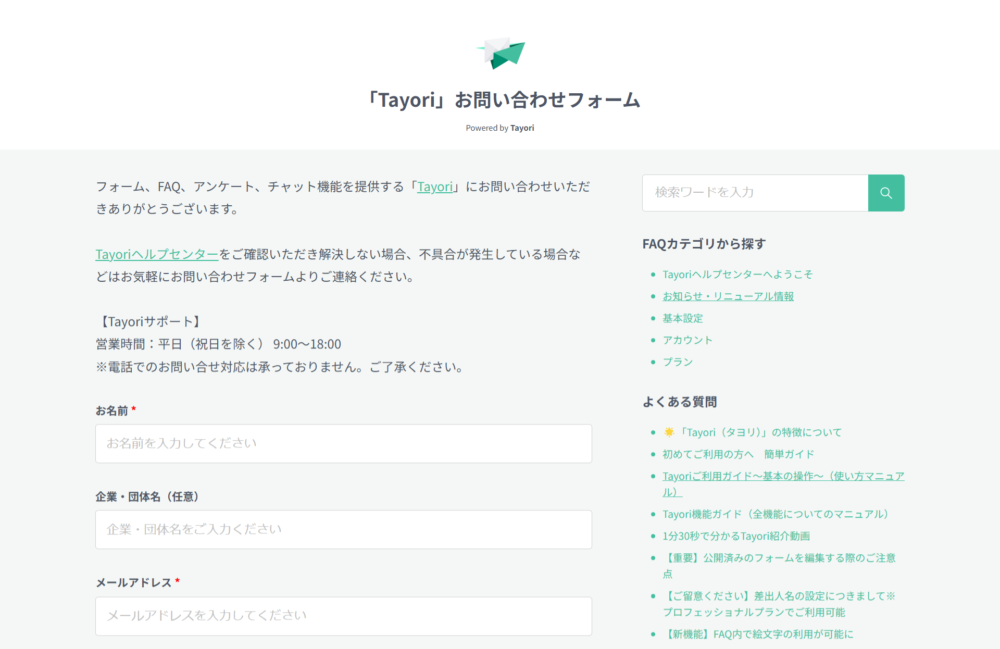 お問い合わせフォームの作成に カスタマーサポートツール「Tayori」