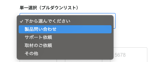 問い合わせの種類(製品問い合わせ・サポート依頼など)をタブ切り替えで分けたデザイン。必要なフォーム項目のみ表示されるため、入力の手間を最小限に抑えられます。