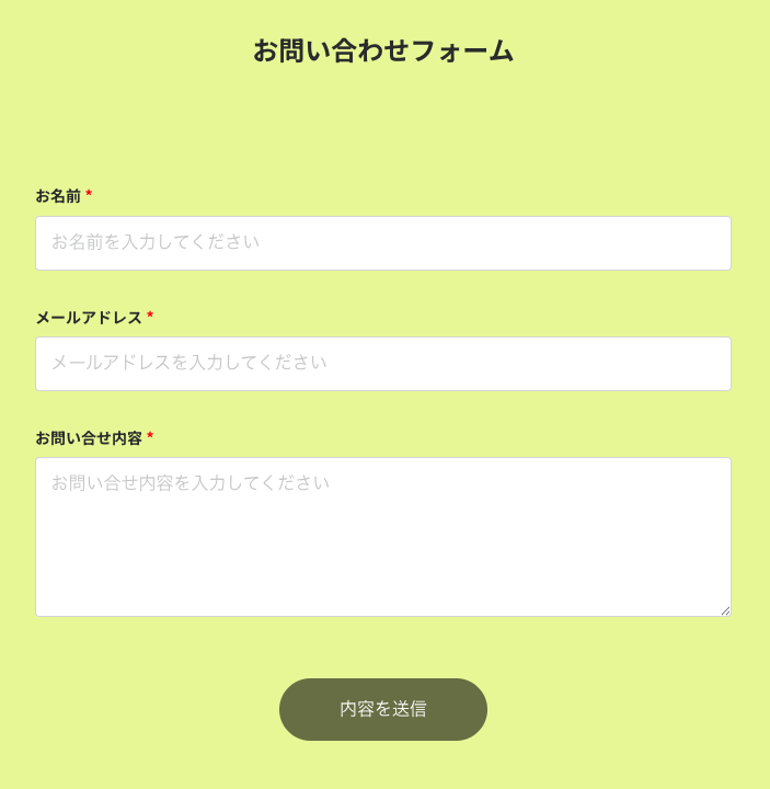 フォームタイトルを大きく表示し、項目数の少ないシンプルな設計。明確な見出しとわかりやすい配色で、ユーザーが迷わず操作できるよう配慮されています。