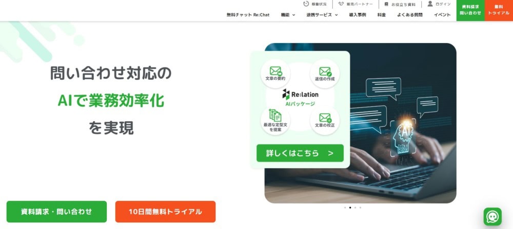 Re:lationは、株式会社インゲージが提供する問い合わせ管理ツールです。メール、チャット、電話など多数のチャネルからの問い合わせを集約しチームで管理できます。APIも公開しているため、外部のシステムとのデータ連携も可能です。月額費用は18,000円~で、利用ユーザー数やストレージ容量によって変わります。