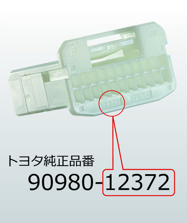 トヨタ純正品番は「90980-●●●●●」の10桁の数字であることが多く、コネクタに刻印されている5桁の数字は「●●●●●」の後ろ5桁部分です。