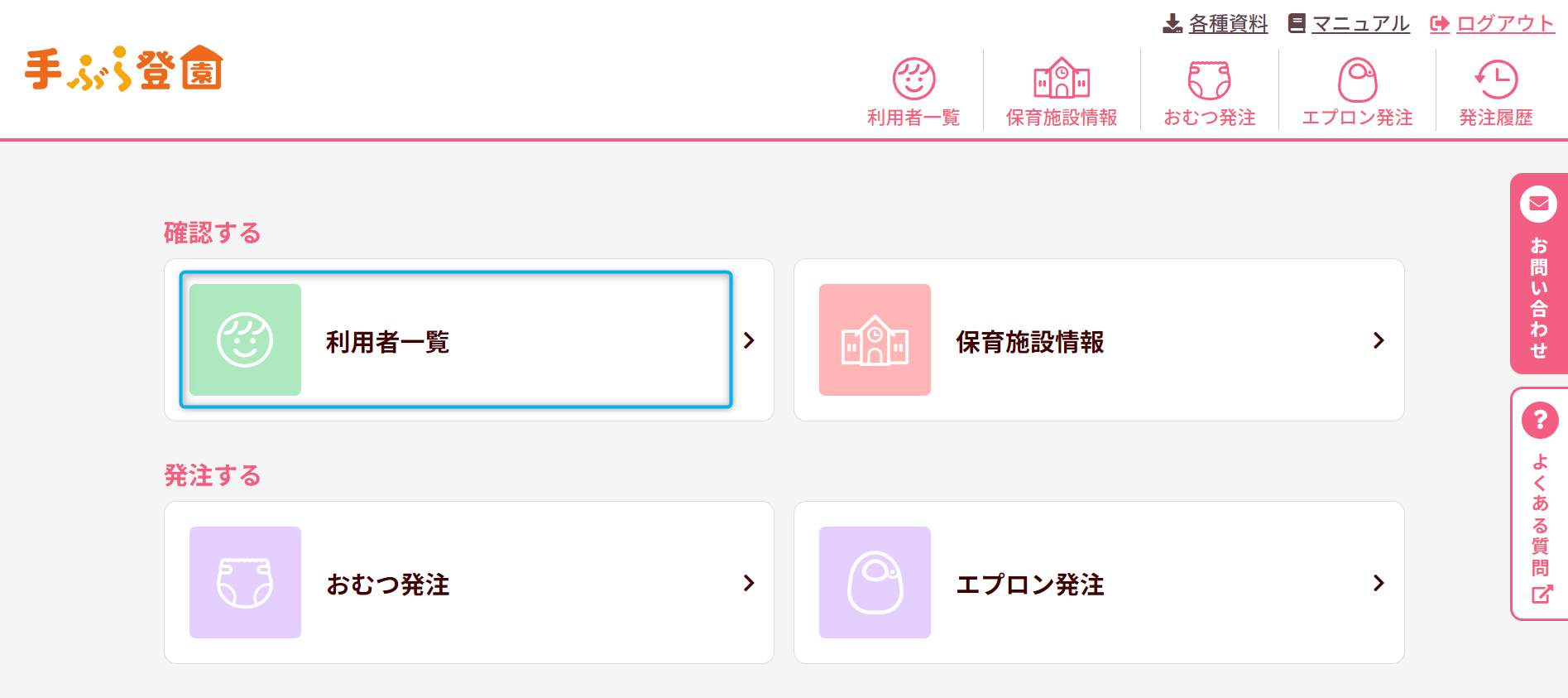 ①管理マイページへログイン(https://tebura-touen.com/nursery/login/)