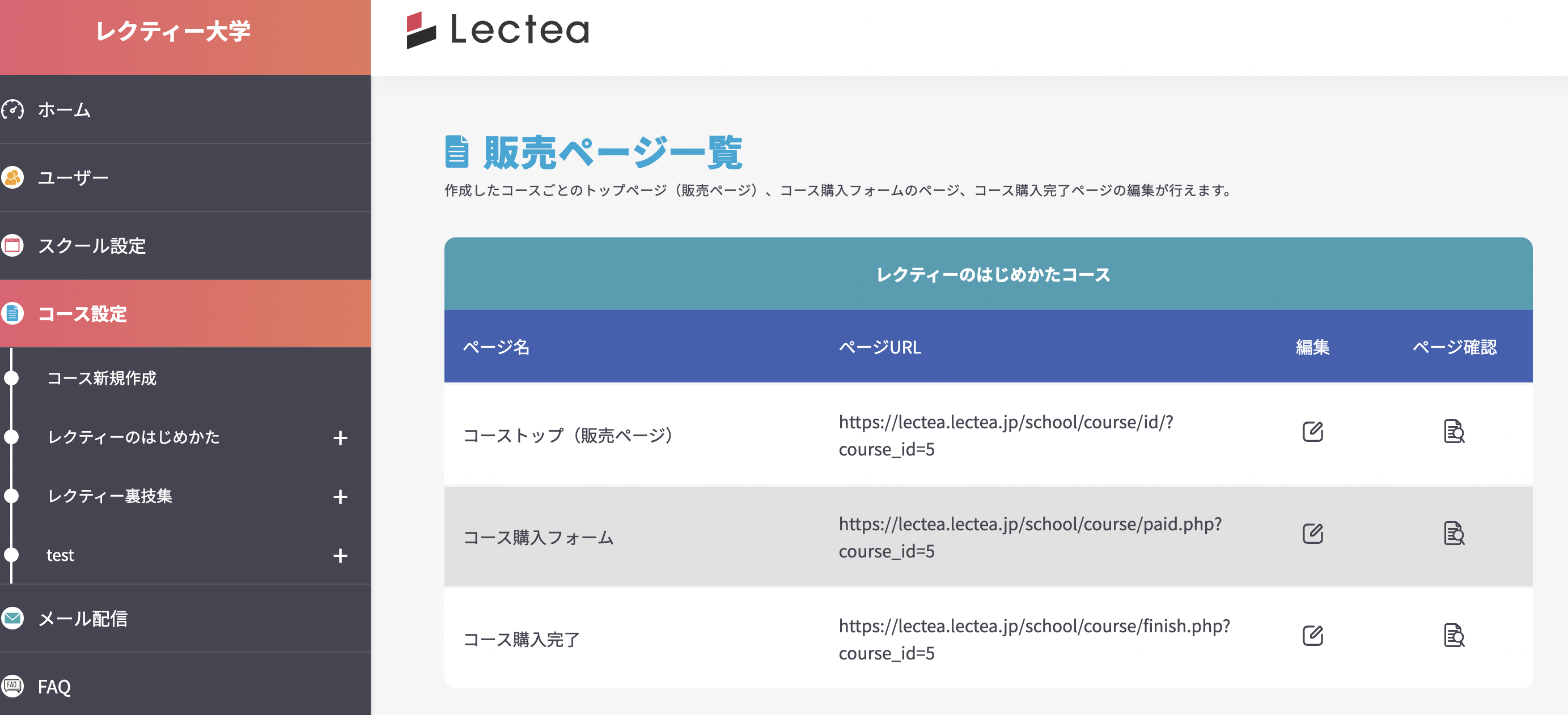 クリックすると、販売ページ一覧ページになるので、リンクを知りたい販売ページを確認しましょう。