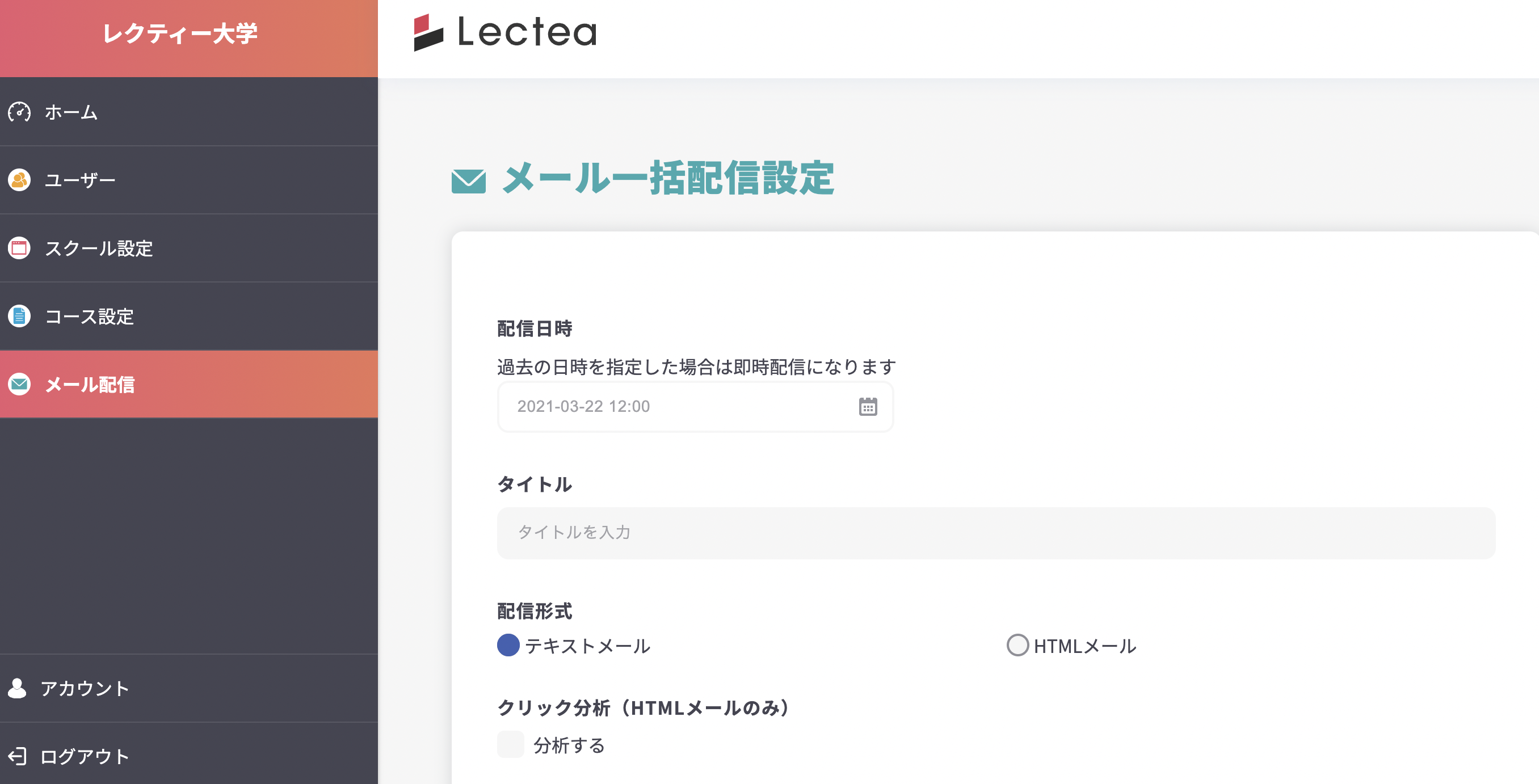 一括配信するメールをテキストメールかHTMLメールに設定できます。