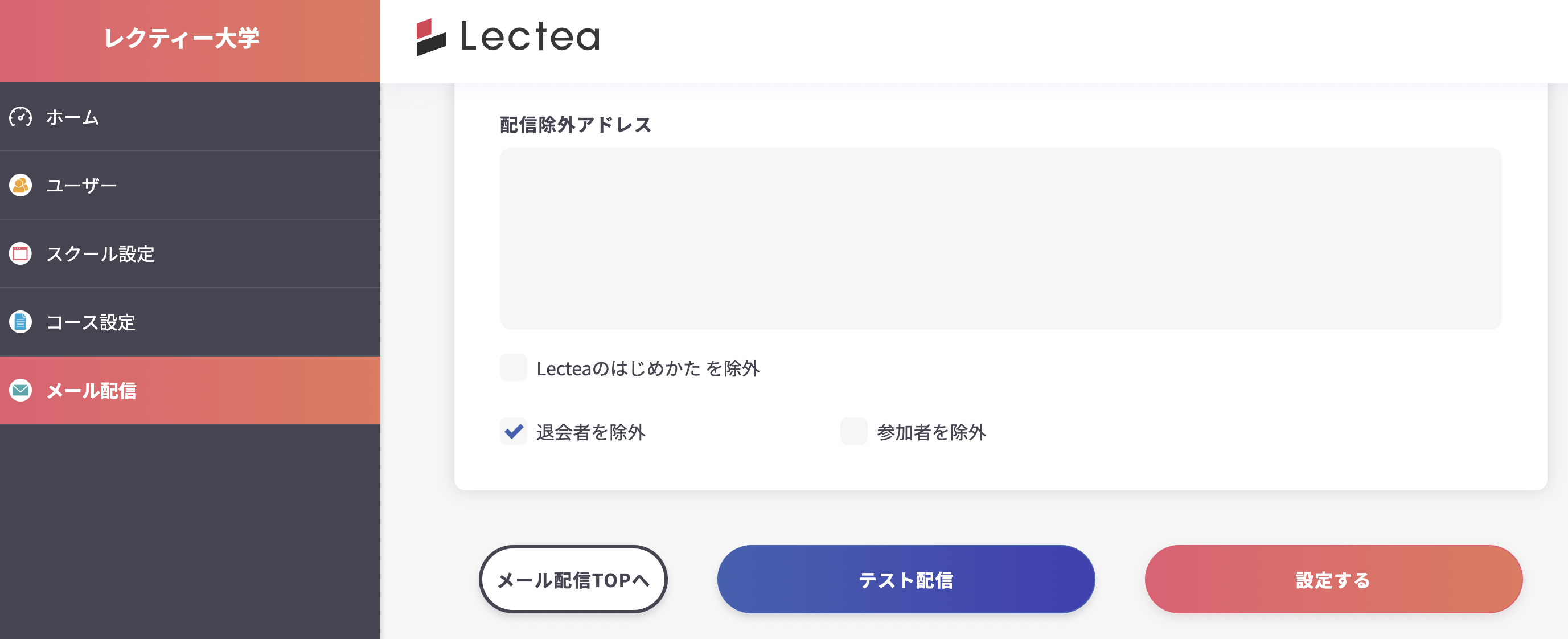 一括配信メールを配信しないアドレスがあれば、入力して配信しないようにします。