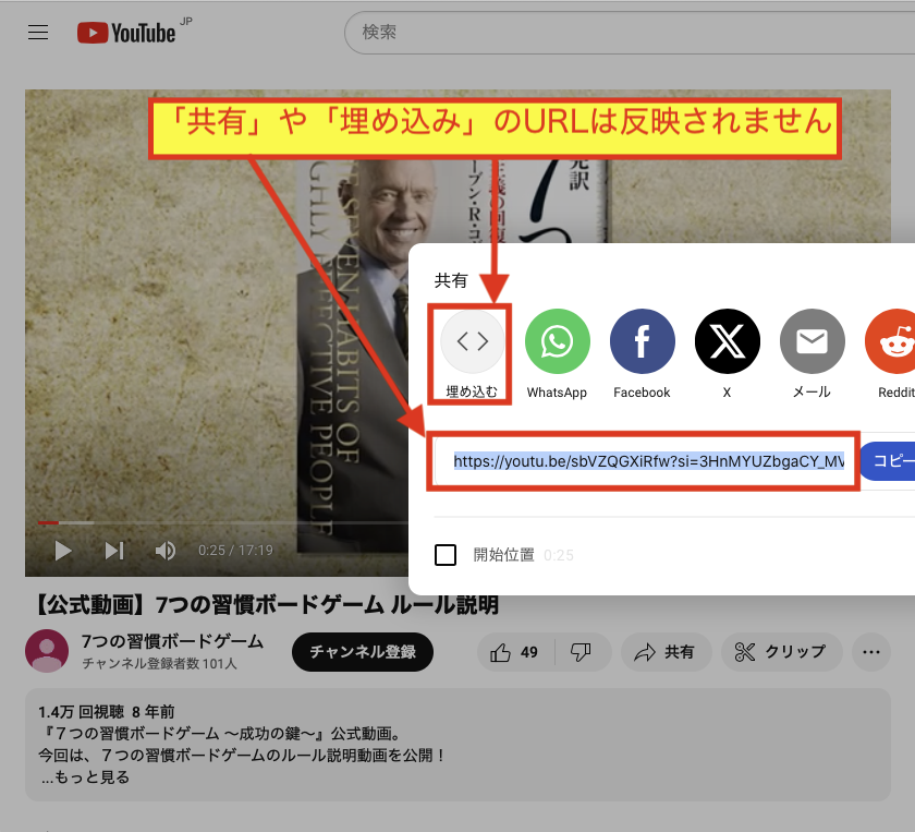 レッスン設定時や販売ページ内「PV設定」の動画URL欄にYouTubeのリンクをいれても反映されません。何か間違っているのでしょうか? YouTubeのURLを挿入する際、共有や埋め込みのURLだと反映されず、 「https://www.youtube.com/watch? 〇〇〇〇」のURLをご入力いただければ反映されます。