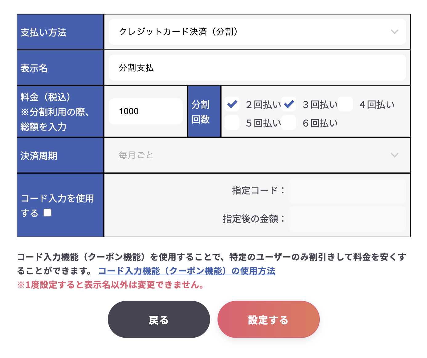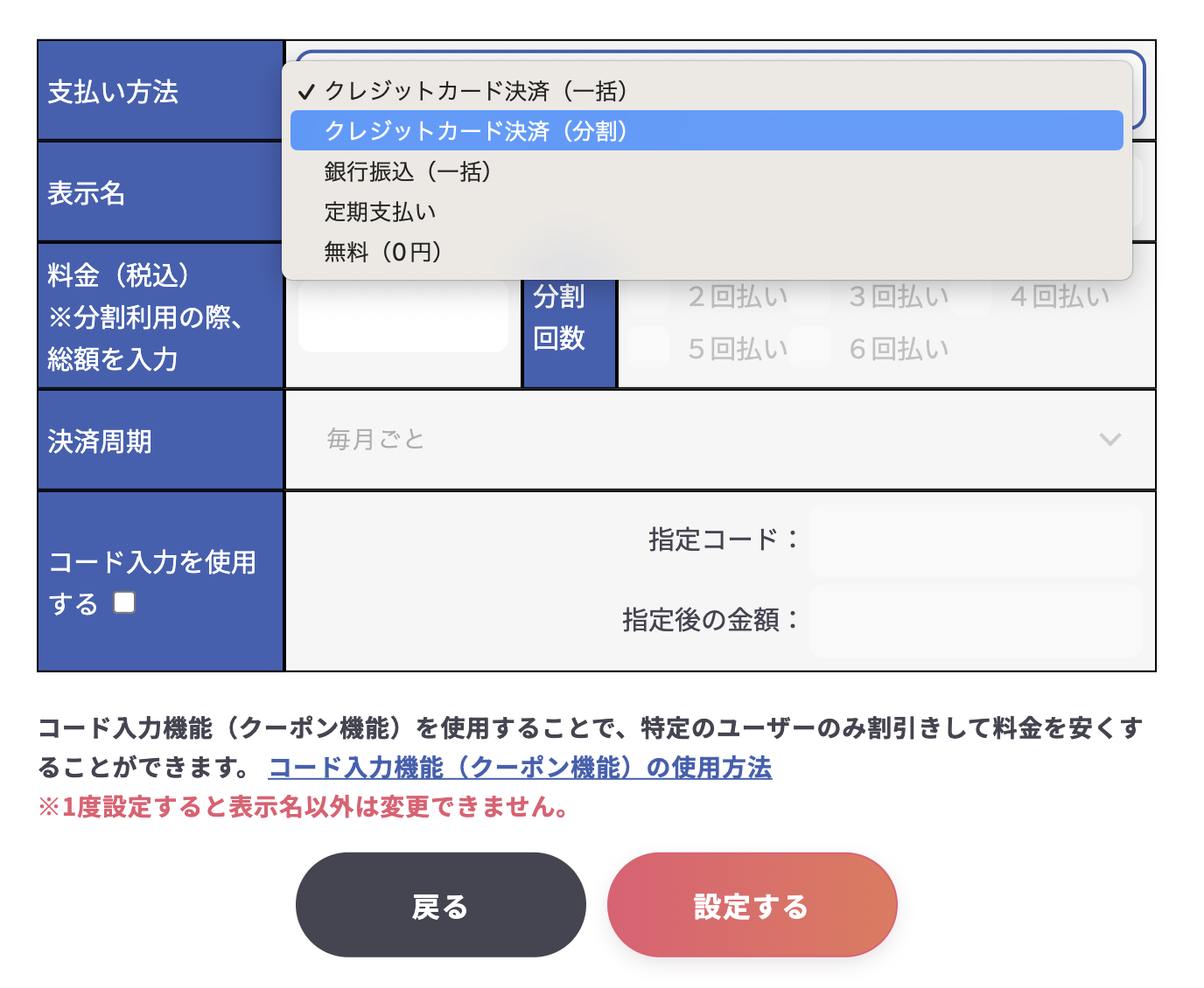 確認したい場合は「料金設定に戻る」をクリックしましょう。