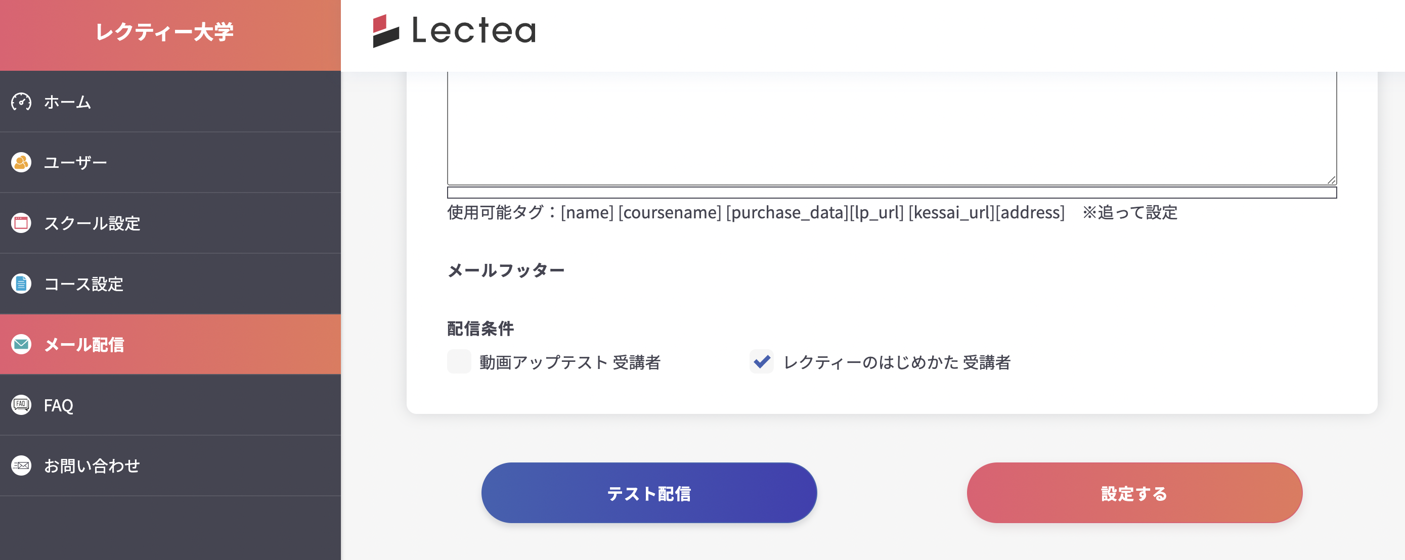ステップメール編集で設定を行います。