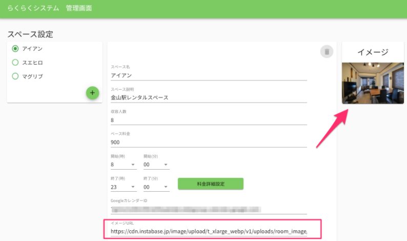 正しく設定して「更新する」ボタンを押すと、スペース設定画面の右上の「イメージ」に、写真が表示されます。