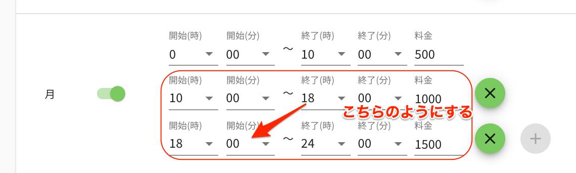 こちらで調査したところ、時間帯ごとに料金の設定を行いますが、その料金の設定がされていない時間帯がありました。