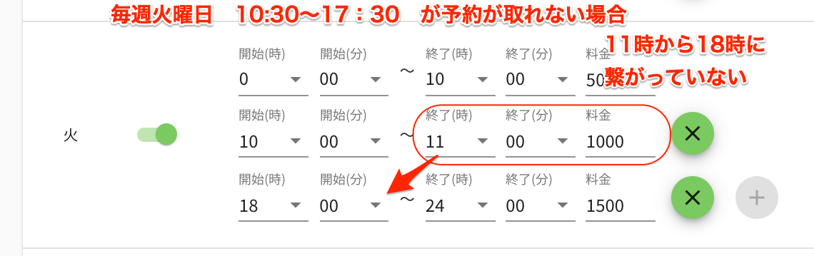 料金が設定されていない時間帯は、きずなで予約を受け付けることができません。