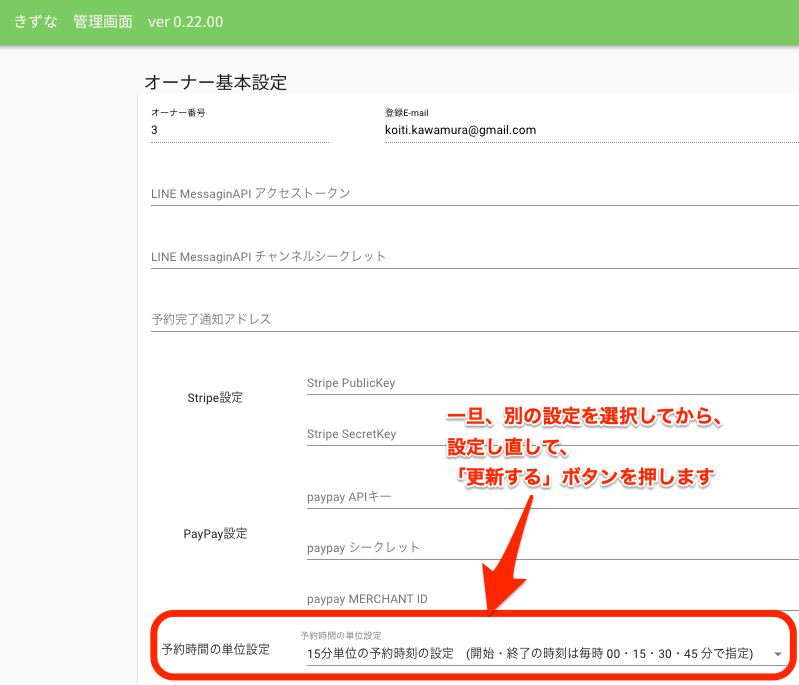 (オーナー基本設定画面で 予約時間の単位設定 を設定し直す)