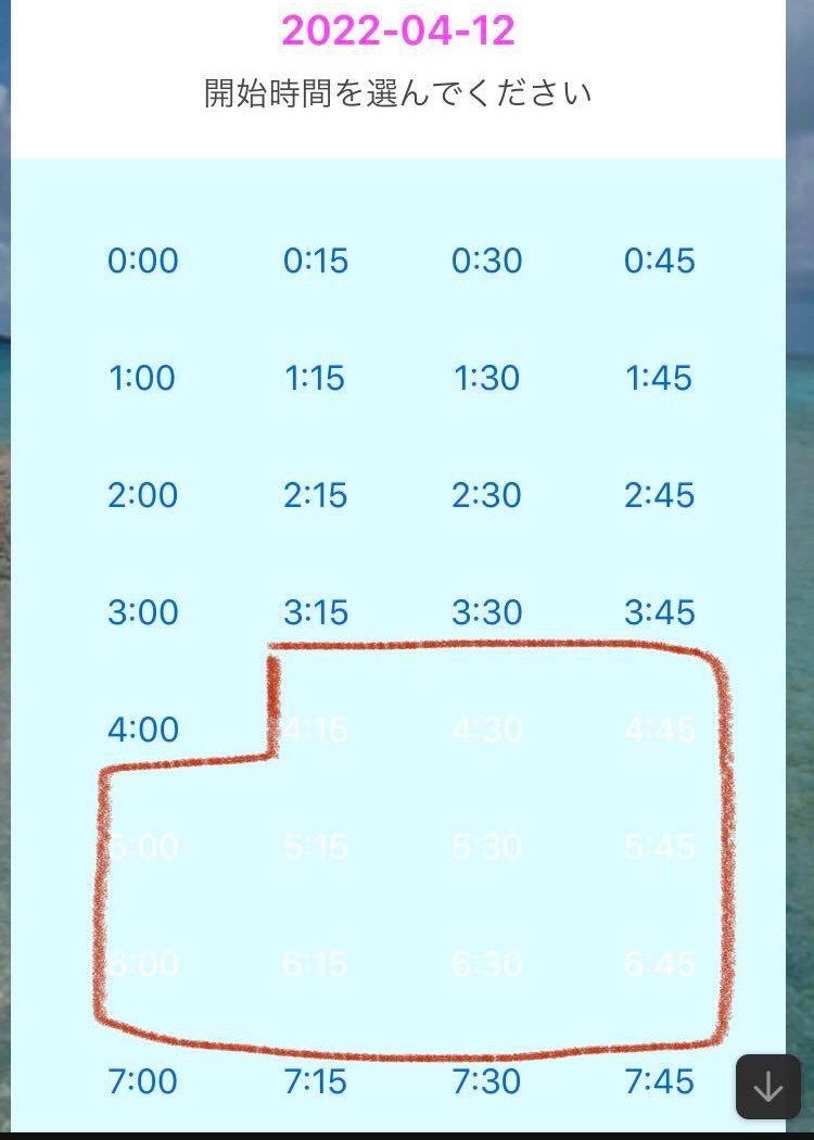 → LINEの時刻の選択の画面でその時間帯は選択できません
