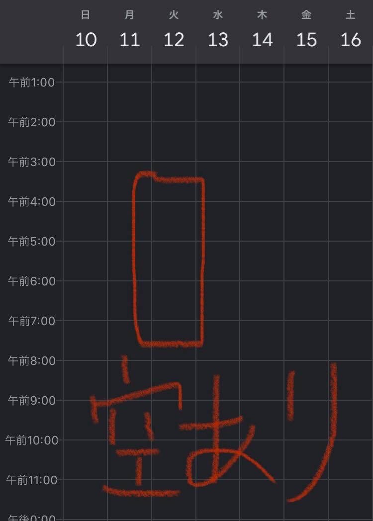 Googleカレンダーでは4/12は予約がないのに、きずなでは4:15〜7:00の時間帯が選択できません。