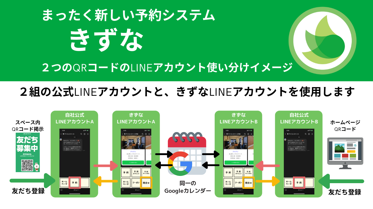 2組の公式LINEアカウントと、きずなLINEアカウントを使用することになります。