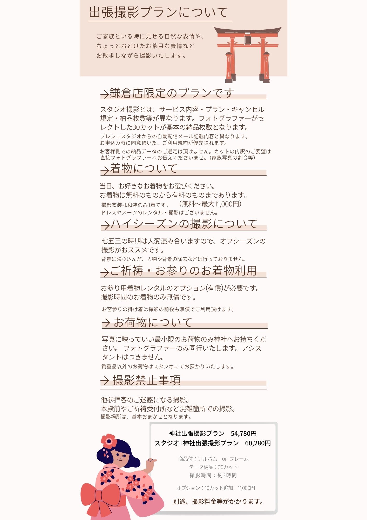 ※雨天の変更でも 専門スタッフによる美容・着付けオプションのキャンセル料金は別途発生いたします。
