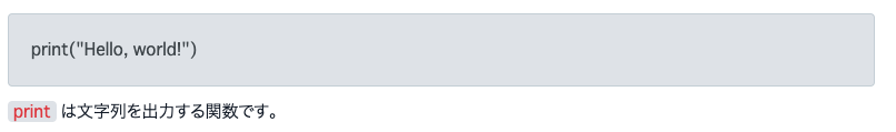 コードブロックはプログラムコードを表現する際に利用するものです。