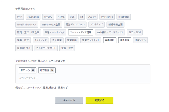 項目にないスキルや関心ごとは、【空欄に入力→Enter】すると追加できます。