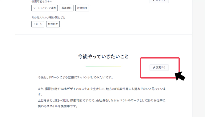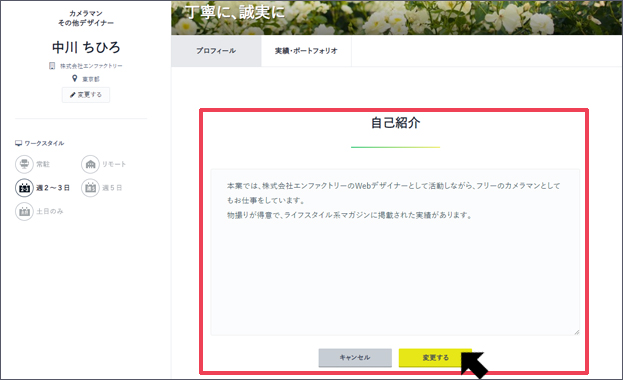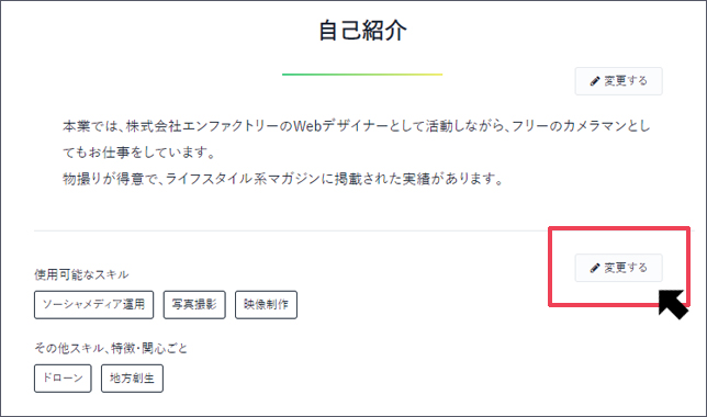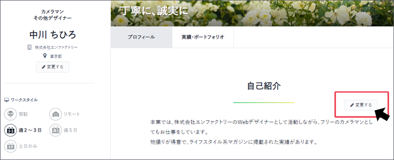 追加した実績・ポートフォリオは【ボタン:変更する】より編集することができます。