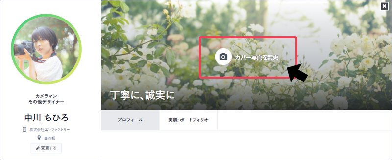 カバー写真箇所をクリックすると、カバー写真を変更することができます。