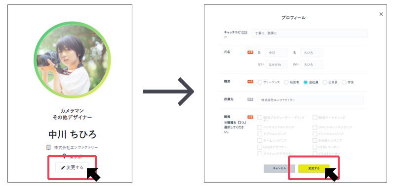 プロフィール編集 > 【ボタン:変更する】より、基本情報を編集することができます。