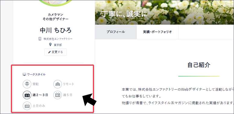 【項目:ワークスタイル】箇所より、該当するワークスタイルのアイコンをクリックします。