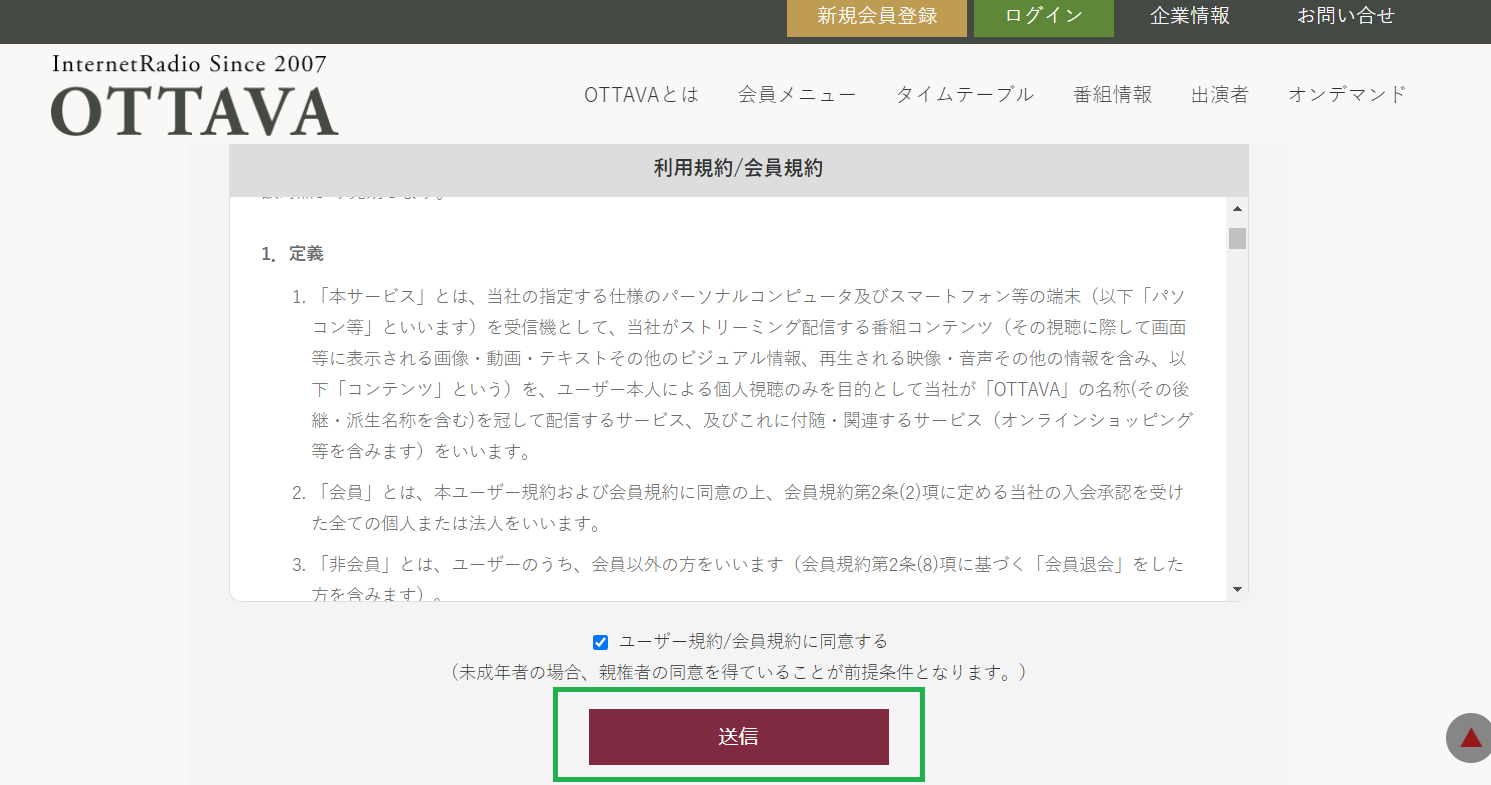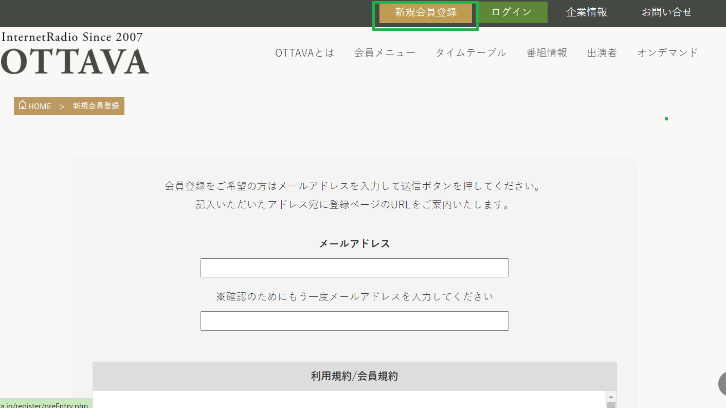 サイトTOPページ上部にある「新規会員登録」のタブをクリック