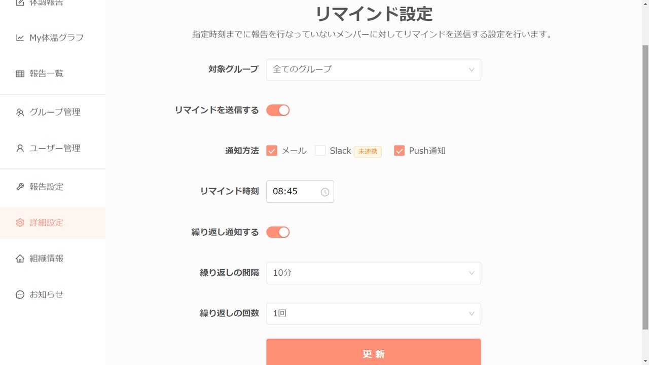 指定時刻までに報告を行なっていないメンバーに対し、リマインドを送信できるようにします。