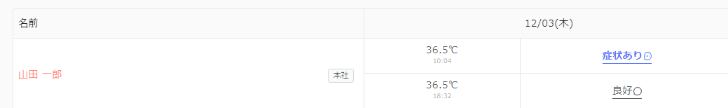 ④体調報告画面に反映され、報告回の切り替えができるようになります。