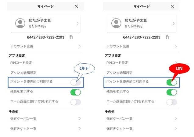 2.マイページの「ポイントを優先的に利用する」をOFFに設定する