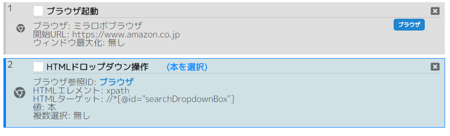シナリオ例(ページ操作>HTMLドロップダウン操作):