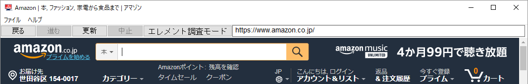 amazonページの検索フォームのドロップダウンから「本」を選択するシナリオ。