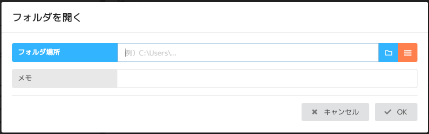 - フォルダ場所:開くフォルダを指定する。 フォルダアイコンからフォルダを選択できる