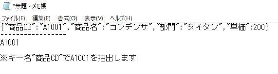 JSONのオブジェクト型データで任意の値を抽出することを想定したシナリオです。