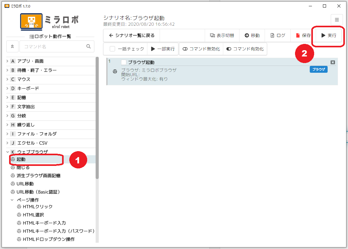 2.ブラウザ起動コマンドからミラロボブラウザを起動する