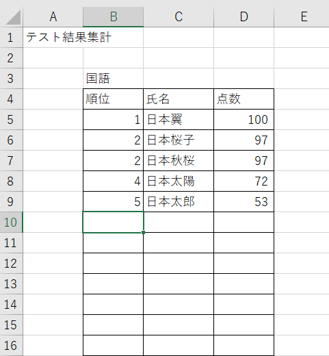 エクセル操作で、セル位置をコントロールすることを想定したシナリオです。