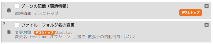 シナリオ例(ファイル・フォルダ名の変更)の実行結果: