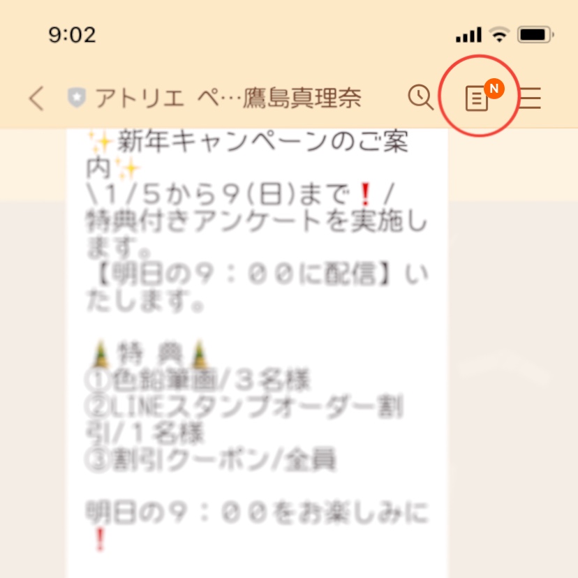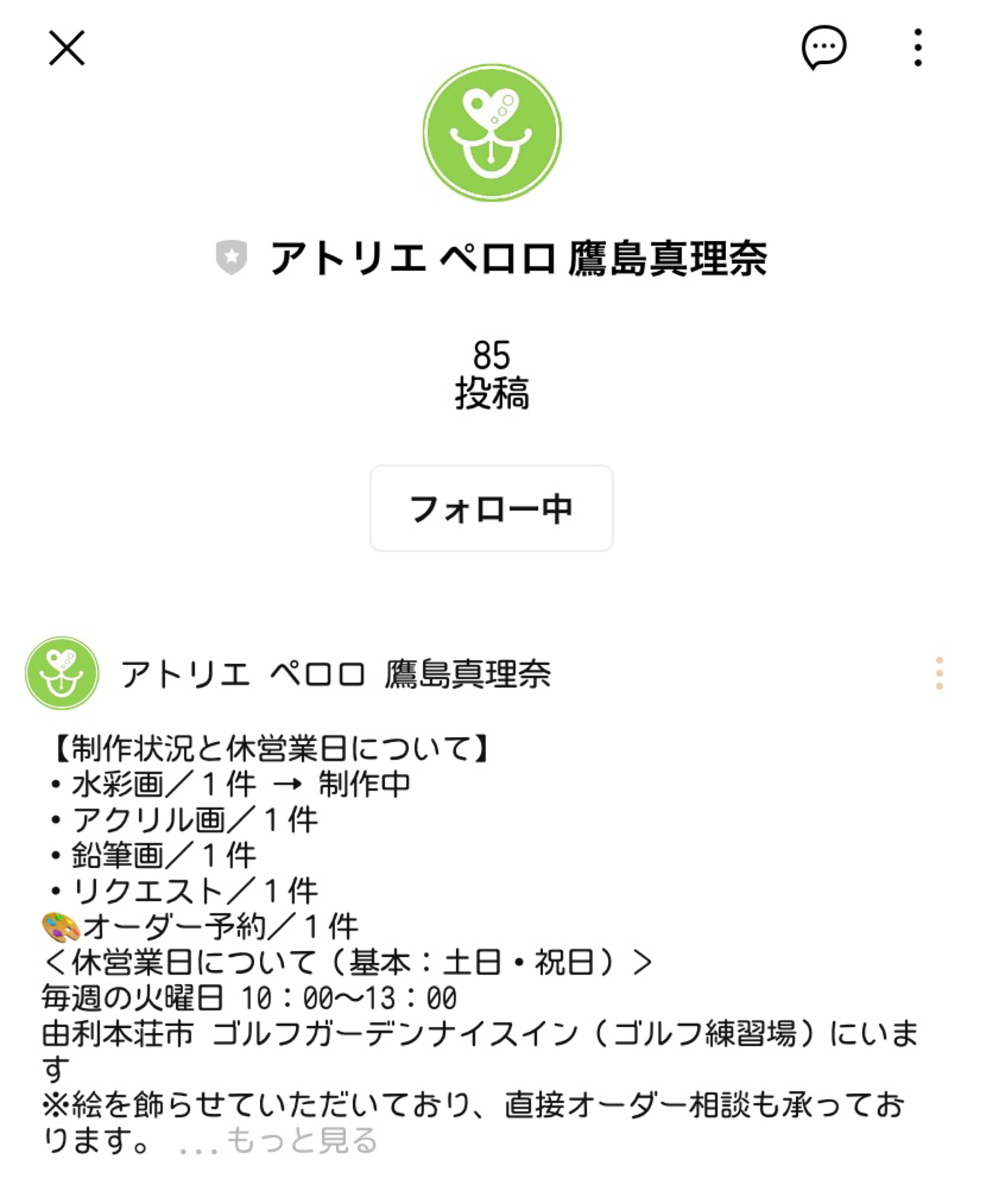 「アトリエペロロ」アカウントのLINE個別トーク画面を開く。