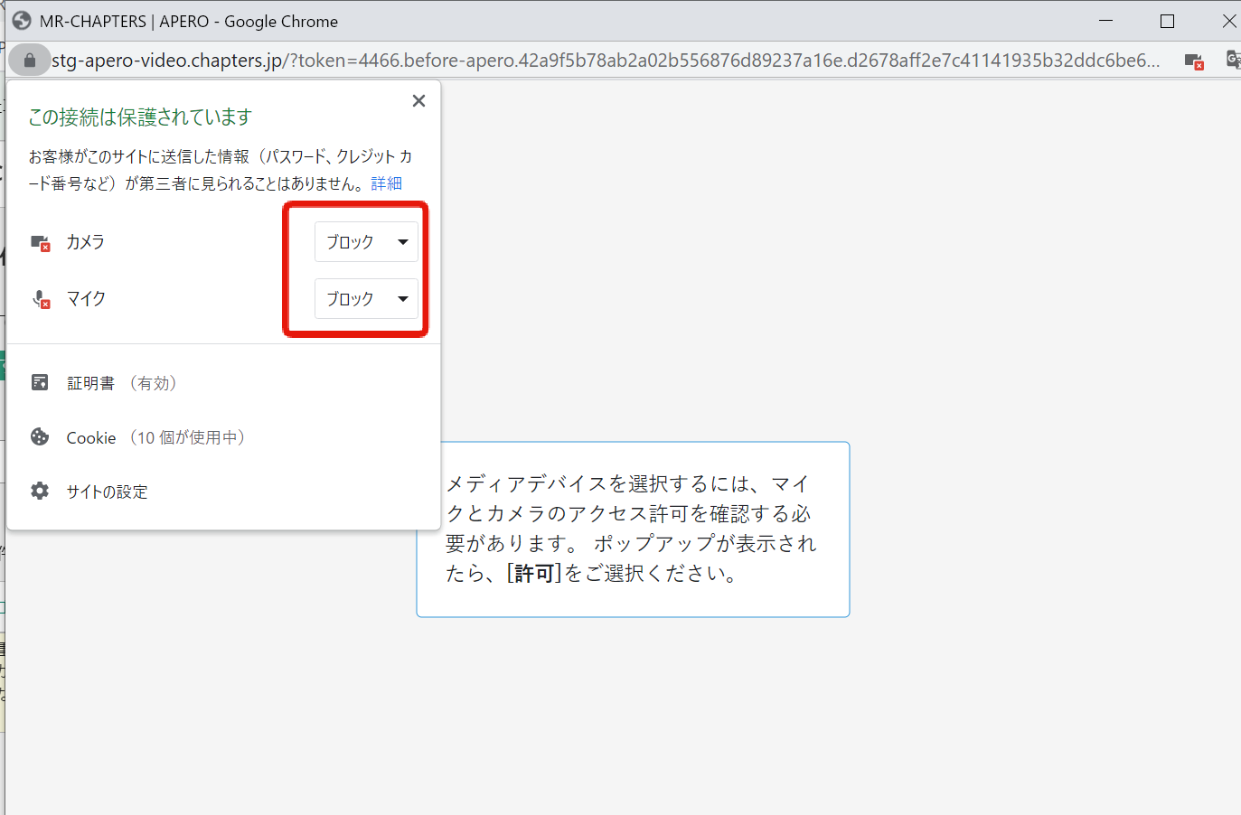 アペロ入室前「ポップアップが表示されたら〜」から、画面が進みません。 カメラ・マイクの設定が「拒否」になっている可能性がございます。 「許可」または「確認」に設定し、ページをリロードしてくださいますようお願い申し上げます。 # アペロ # トラブル # マイク # カメラ # 聞こえない