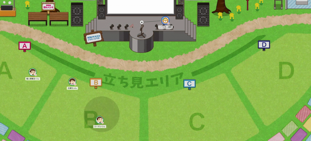 接続する際は、舞台上にあるオブジェクト(人のアイコン)を選択するか、「接続する」ボタンを選択してください。