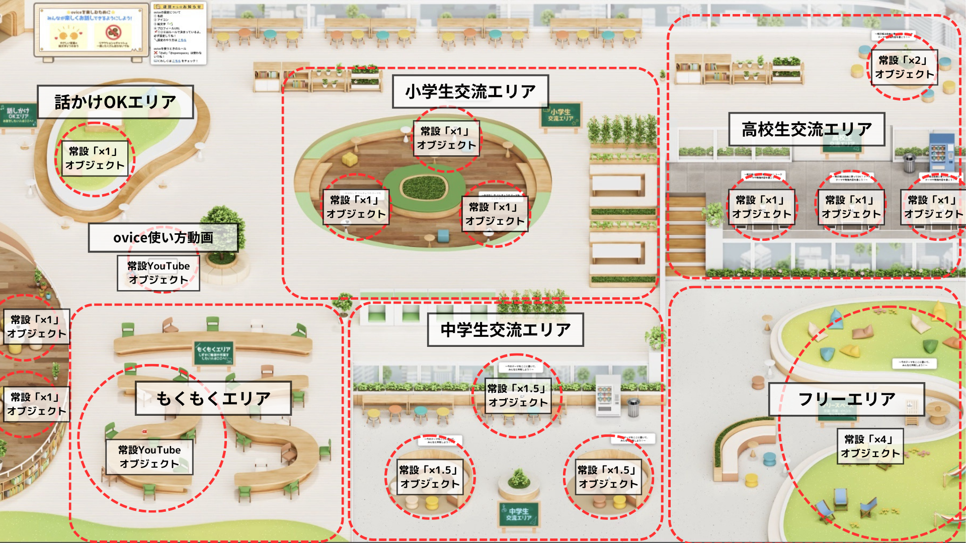 オンラインスペースには、いくつか固定オブジェクトを配置しています。