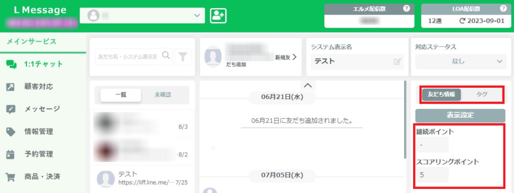 あらかじめ設定することで、友だち情報やタグを1:1チャットで確認できます。