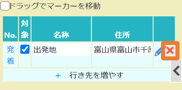 1.行き先リストの発着地横にある×ボタンを押してください。