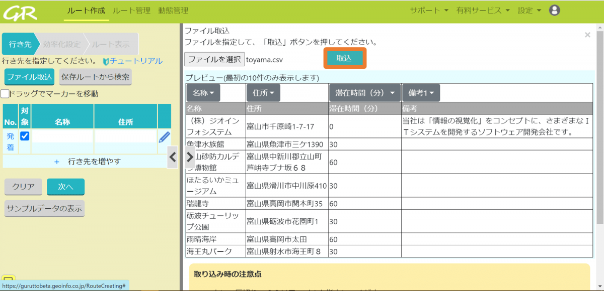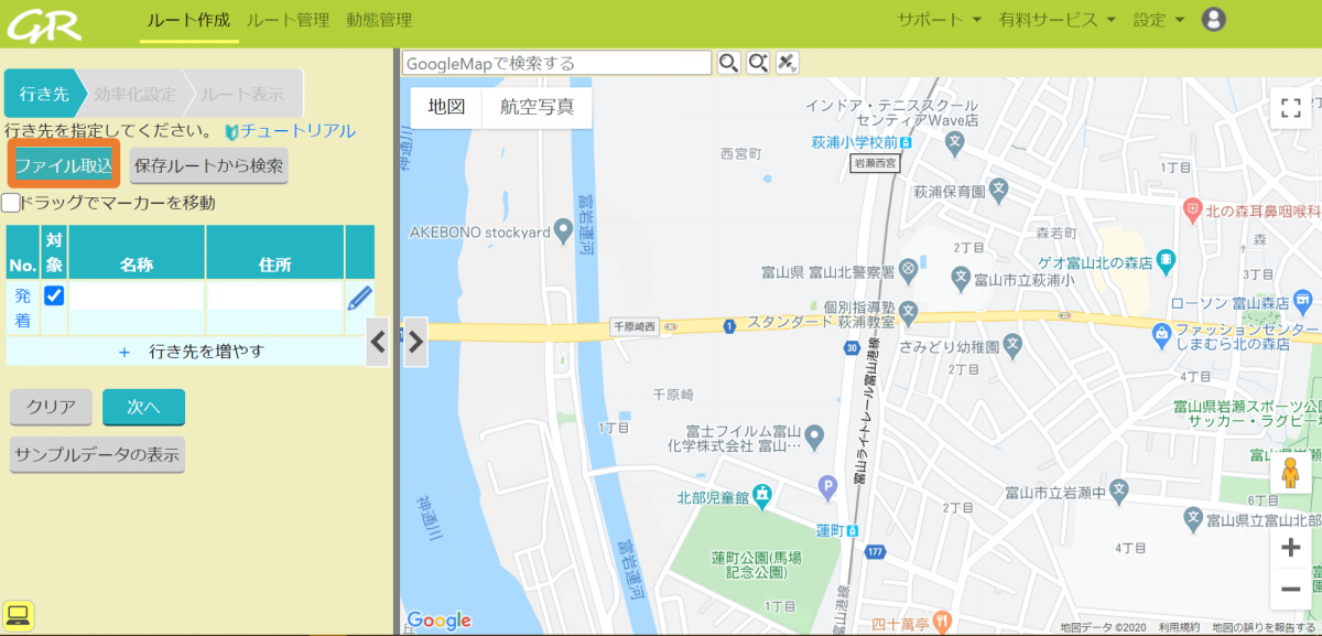 詳しいファイルの作り方は本ヘルプページの「詳しい使い方(ルート作成)」の「ファイルを作成する」をご覧ください。