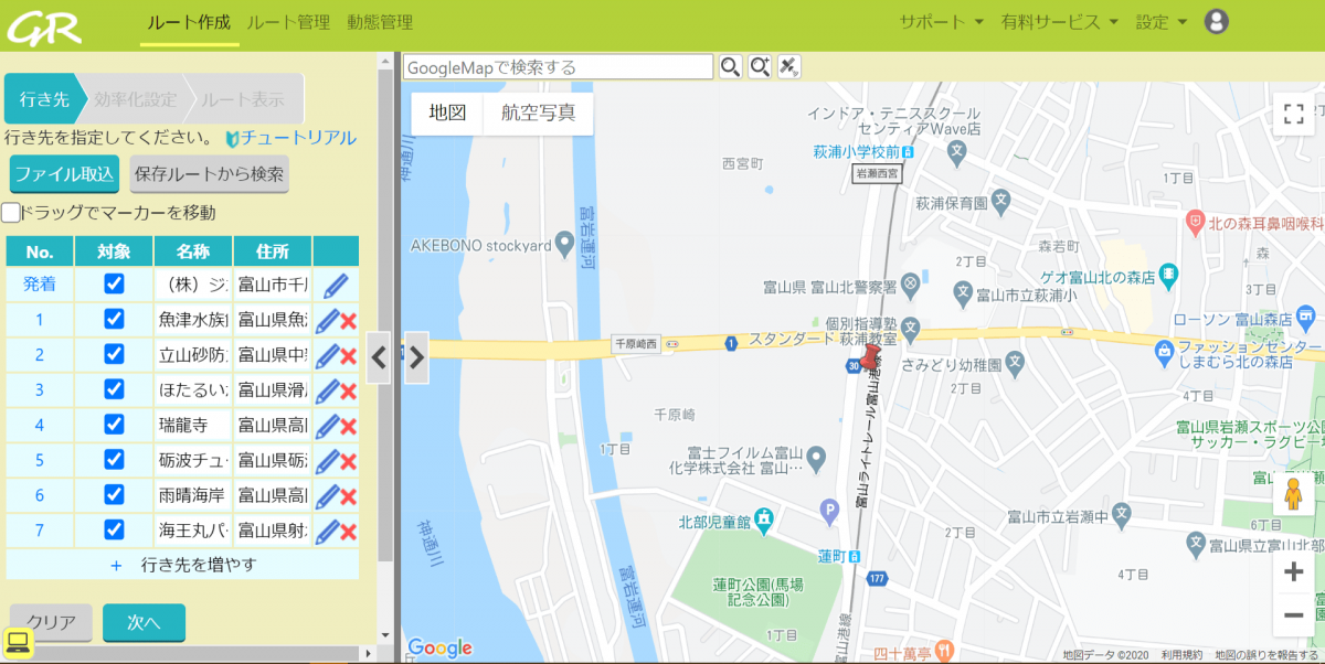 5.すでにある行き先リストに追加したい場合、『現在の行き先リストに追加』をチェックしてください。