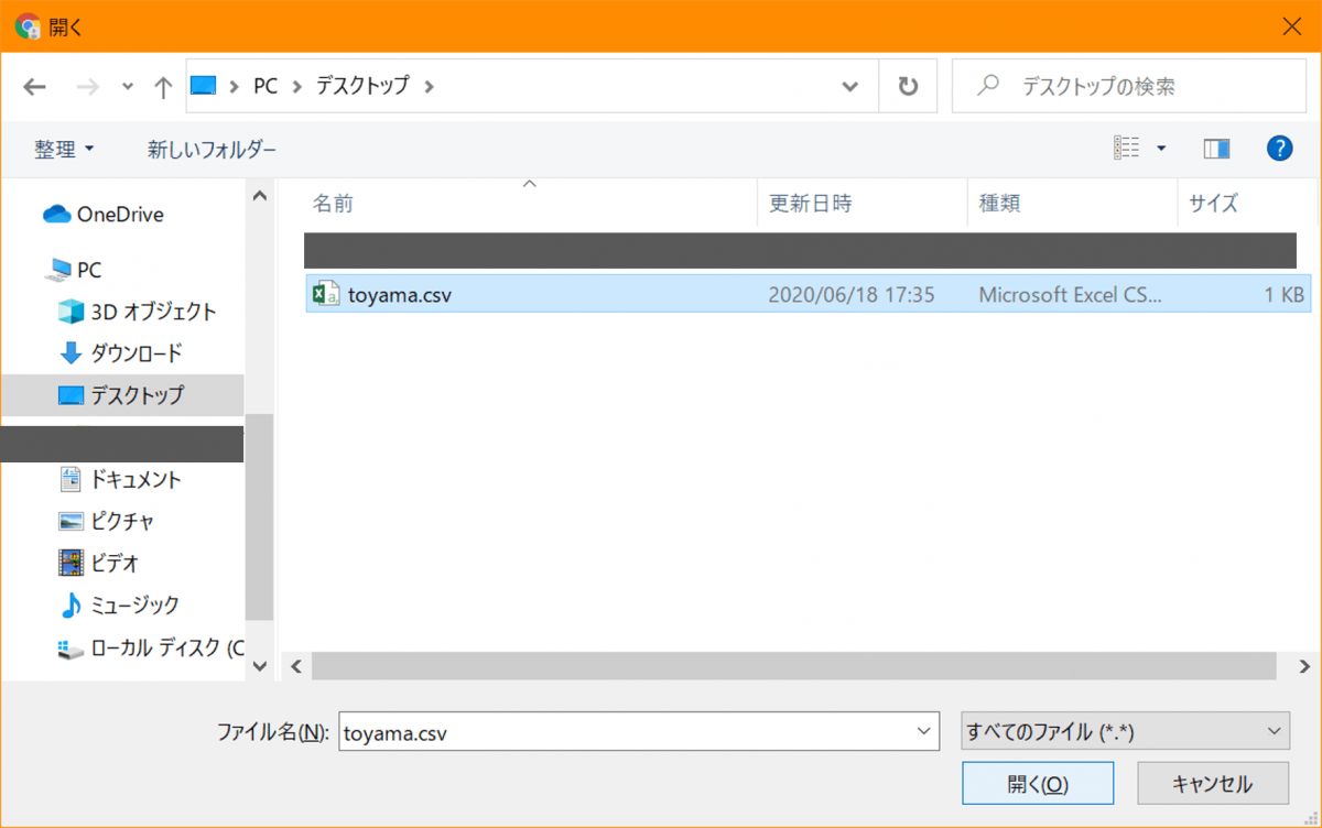 1.取り込みたいファイルを用意してください。対応しているファイル形式は以下の通りです。