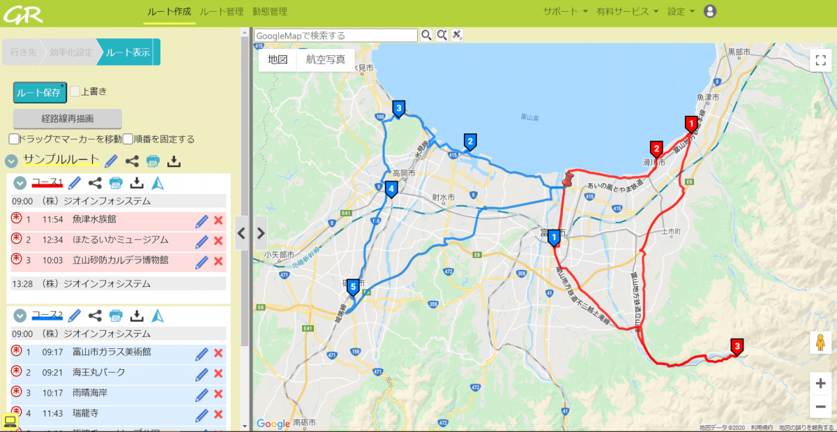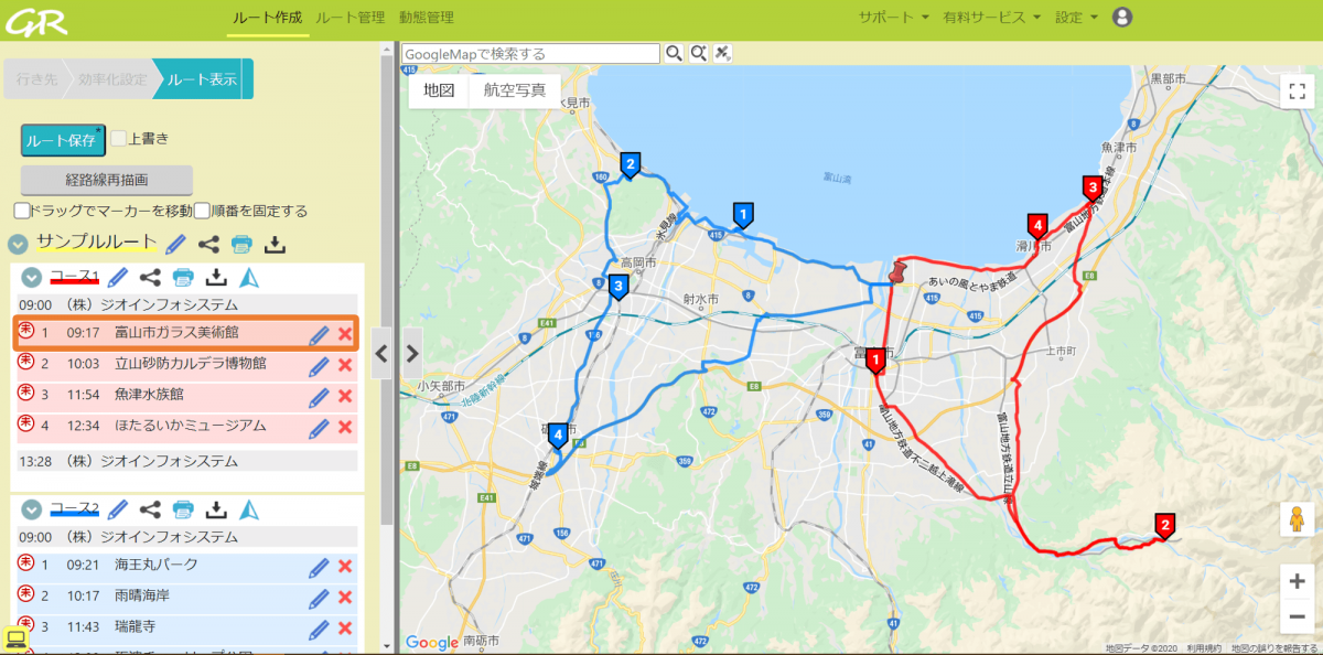 3.コース間で入れ替える場合、入れ替えたい行き先を別のコースまでドラッグしてからドロップしてください