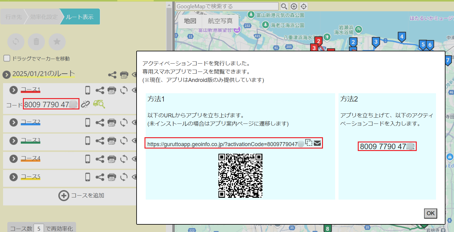 4.アプリ共有が完了し、アプリURLと12桁のアクティベーションコードが発行されます。