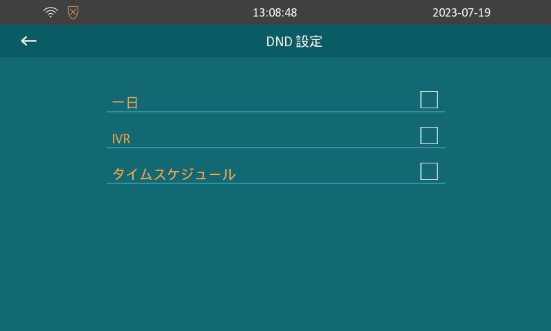 呼出し音を鳴らないようにする方法 【詳細】→【設定】をタッチします。 詳細→設定.bmp アイコンの【DND】をタッチして、設定をオンにしますと、呼出し音が鳴りません。 DND.bmp DND設定.bmp 公開日時 : 2020/06/16