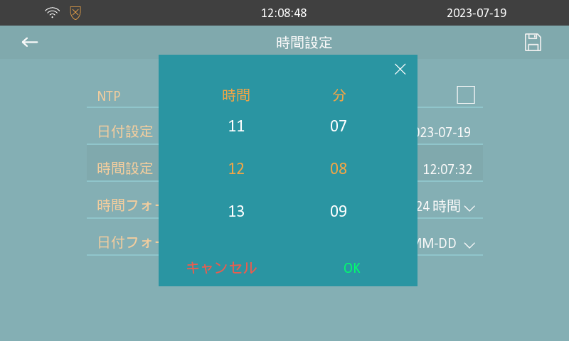 時間設定画面内で【時間】を入力し【OK】をタッチします。